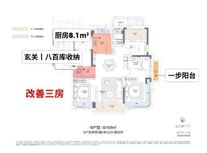 它让约109㎡成为一步到位的改善三房,告别市面上常见的紧凑“2+1”户型,无论家庭结构如何变化,都能从容应对、长久舒适。