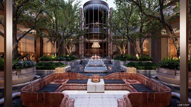 项目采用“围合+轴线”布局,重现了海派里弄的围合感与街区韵律,暖色贝金米黄石材搭配红洞石墙面,融合性新海派风格在前滩元境中获得系统性的诠释,放佛一座微型衡复风貌区,唤醒城市记忆。
