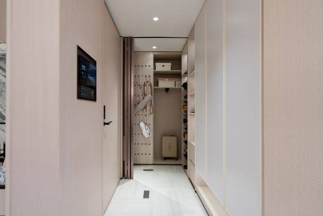 入户玄关也不再是简单的换鞋过渡区,而是升级为大容量八百库收纳系统;