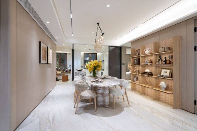 全屋几乎无过道面积浪费,空间利用率高;餐厅尺度宽裕,轻松放下圆桌,家人围坐、待客聚会都更显体面。