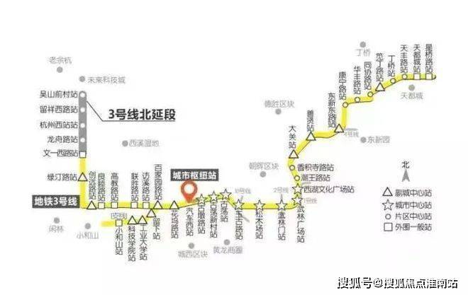 从西站出发,地铁3号线串联起总体量近150万方的黄金商业走廊。