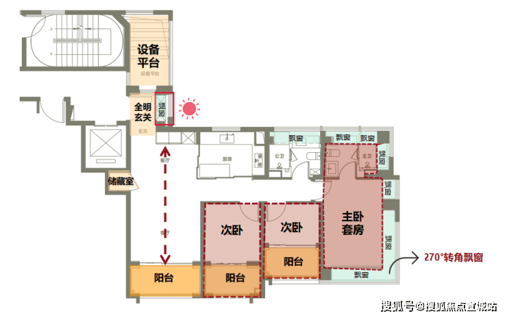 每个户型都可圈可点,以主力建面约123㎡3房为例.