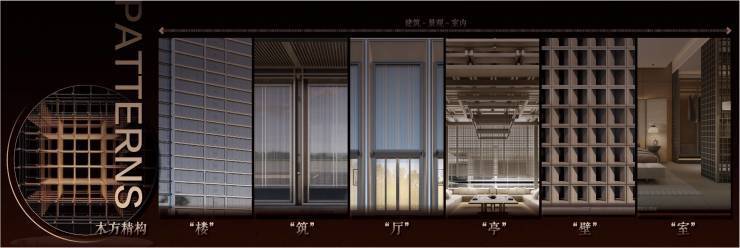 提取东方榫卯结构为原型,打造立面粉黛色彩构成,以抽象叠落顶部造型,结合大面积玻璃幕墙,形成光幕全屏效果