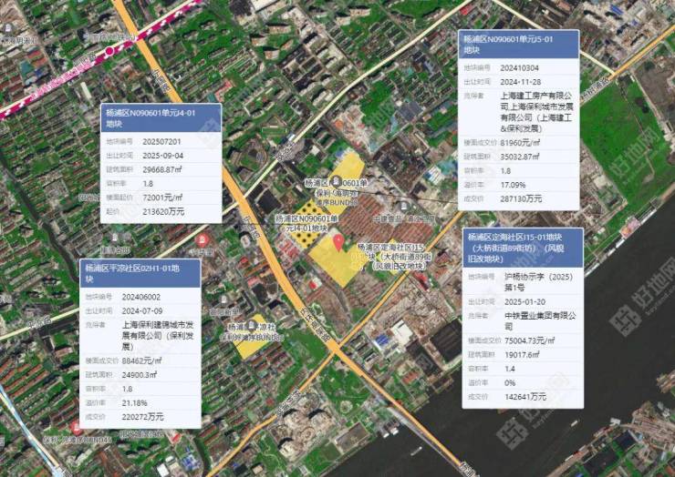 地块北侧是杨浦区N090601单元I4-01地块,出让面积16482.71㎡,容积率1.8,建筑面积29668.87㎡。地块起价213620万元,起始楼面价72001元/㎡。