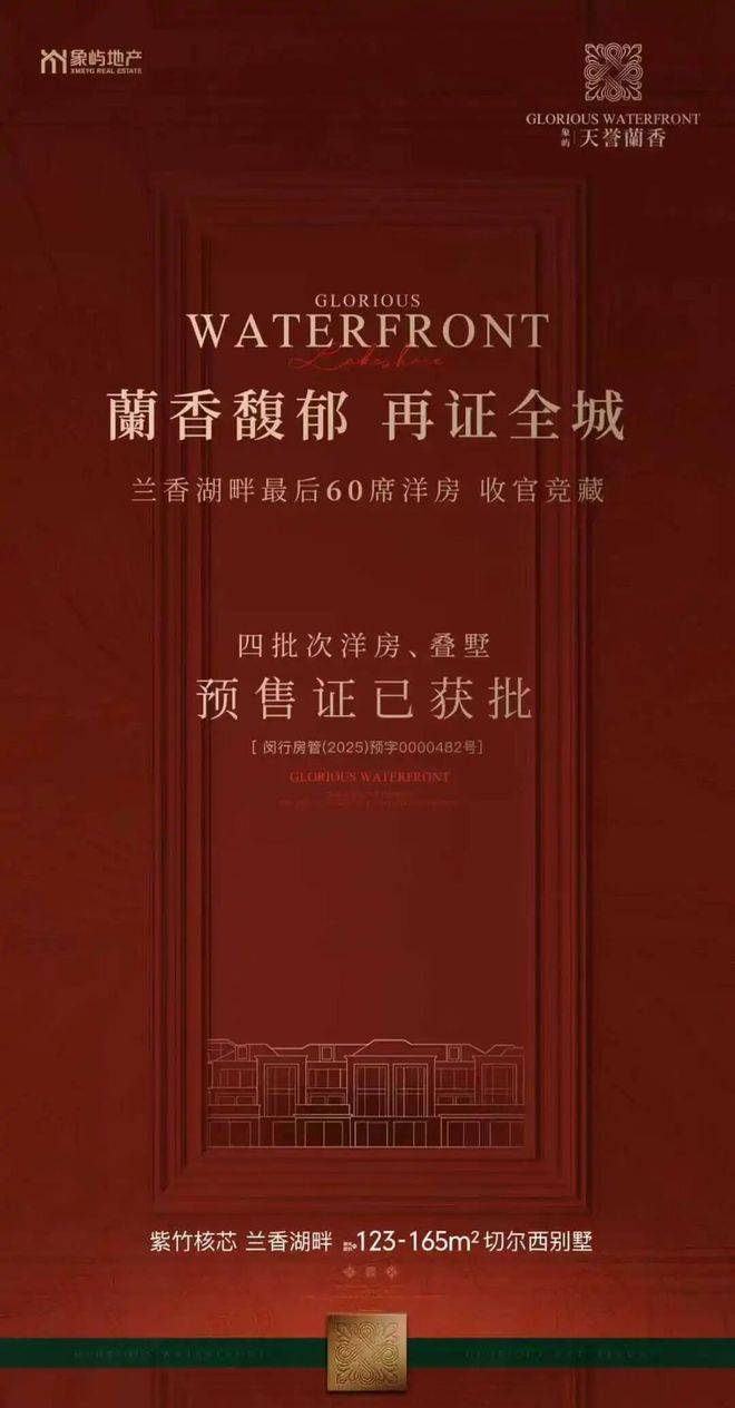 象屿·天誉蘭香,这个屡次引发市场高度关注的品质住区,其四批次房源现已正式取证。此次,项目迎来一个标志性节点:作为整个社区中距兰香湖最近的地块,其备受青睐的墅境臻装洋房产品,仅余最后约60席,正式步入珍藏阶段。一线瞰湖的居住体验,自此之后,将更为稀有。