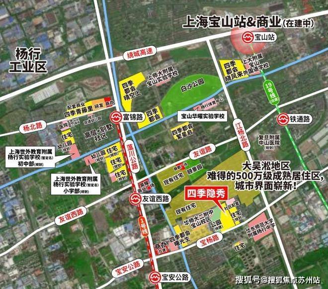 高能教育:华师大二附中宝山校区(高中,距项目300m内)、华东师大附属宝山宝杨实验学校(九年一贯制,距项目300m内)、项目代建幼儿园(公园旁,距项目300m内)、距项目1.5km内还有5所中小学、2所幼儿园:华曜宝山实验学校(建设中,九年一贯制,距项目1.5km)、上海师范大学附属中学宝山分校、上海大学附属宝山外国语学校(九年一贯制)、杨泰实验学校、世外杨行实验学校(九年一贯制,23 年签约待建)、杨泰中心幼儿园(公办)、四季万科幼儿园(公办)等等;届时以具体学校及主管部门的要求为准,不做学区承诺。