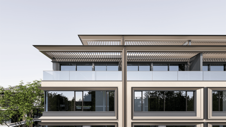 项目没有采取国贸的标准产品线,而是因地制宜融入广富林文脉,塑造全新的“新江南学院派”风格建筑。