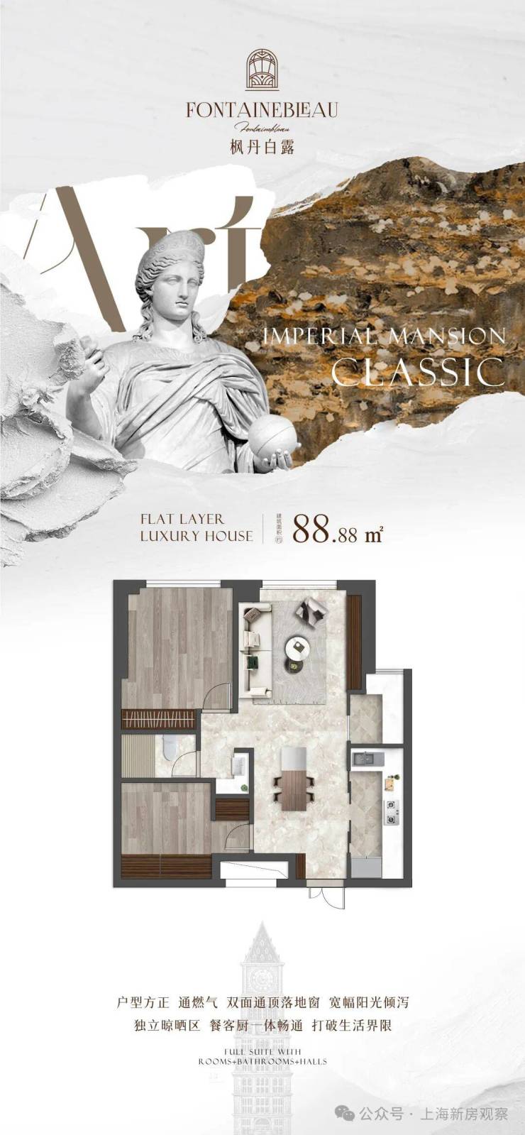 普陀长风【枫丹白露】建面约86-186㎡法式艺术私邸,通燃气!总价520万起!