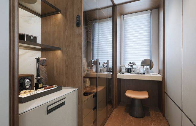 晴翠的匠心,还藏于细节:类一梯一户设计与独立玄关,守护归家的私密与仪式感;门内,日立中央空调、迈迪龙新风与地暖,臻心守护日常,恩仕智能马桶与美妆镜柜于方寸间尽显优雅,高效厨房搭配老板五件套让烹饪得心应手,全屋精妙的收纳系统,则让生活秩序井然。