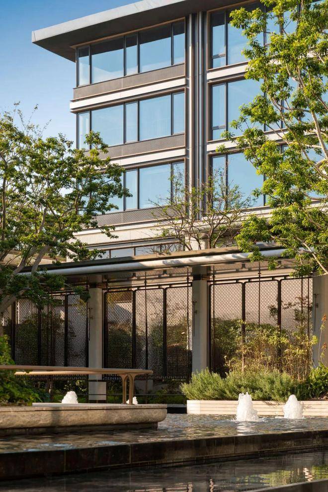 建筑美学上,高区以极简笔触勾勒,超纤细Bezel-less边框、大幅窗墙比与四面铝板公建化立面,彰显力量与序列感;低区基座选用白玫瑰石材,大面积玻璃与金属线条,营造温润亲近的体验。