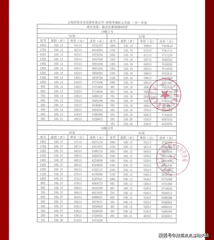 项目一房一价表