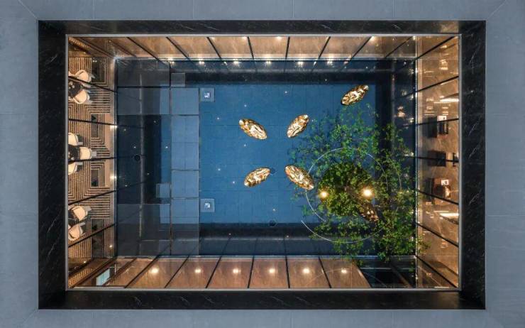 莲语:莲花高意着高洁、典雅、真善美。莲作为中庭空间装置,寓意着君子待客之道,以真善美得真诚态度对待每一位到此的贵宾。