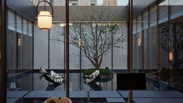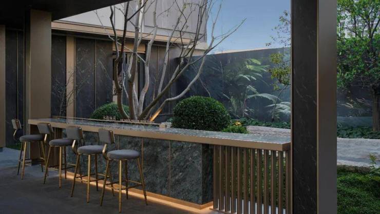 我们希望给人的情感留出更多空间,让人可以把注意力集中在更多内在的地方。走进水院,从室内转换到室外,更多的是感受阳光、树木与内心形成的默契。通过树木的性格展现,创造一种和自然同频的归家场景。