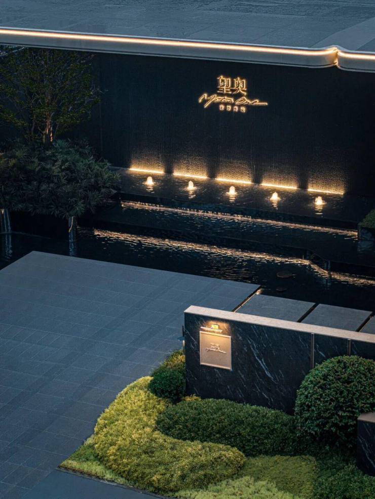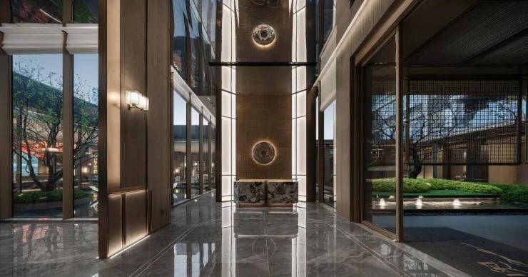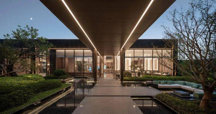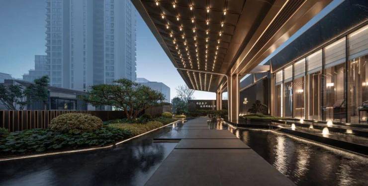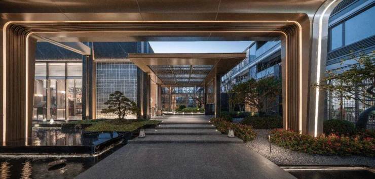 酒店式会所入口营造灵动婉约,烂漫自然的入口空间。成为业主从繁忙都市回归诗意生活的第一重心理暗示。