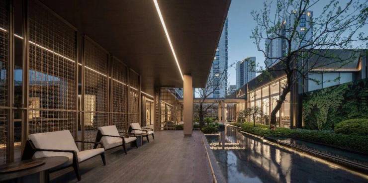 漫步于廊下,光影流转,水波荡漾,奢华的品质强调了归家的仪式感。