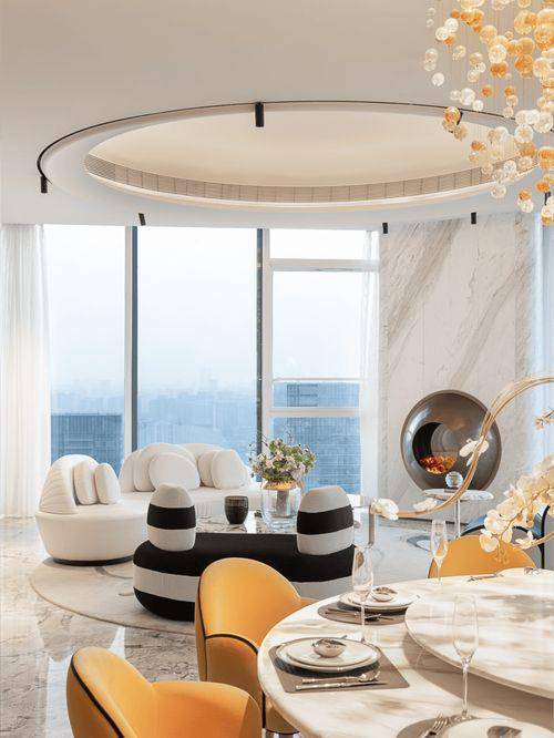 【意趣丰盈的会所】项目会所位于51层,以高定「云端六境」,聚“社交、会晤、私宴”等复合型功能,呈现惬意天际生活空间。