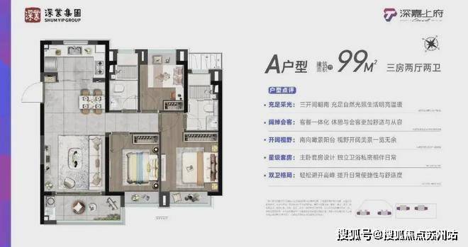 建面约88-99m²品质3房