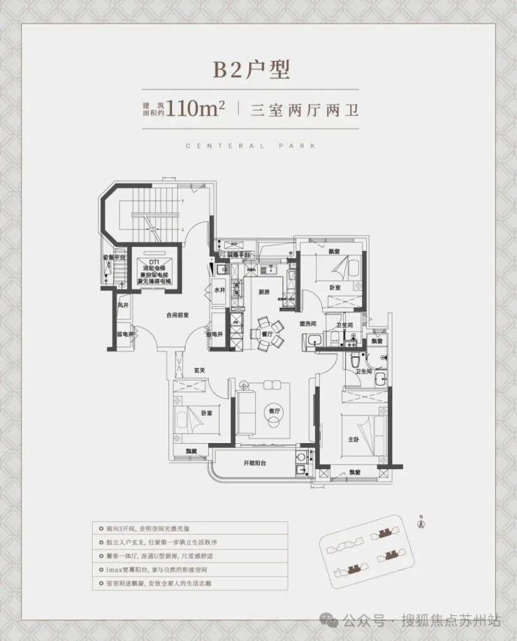 110㎡(三室两厅两卫,总价约 635万-726万)