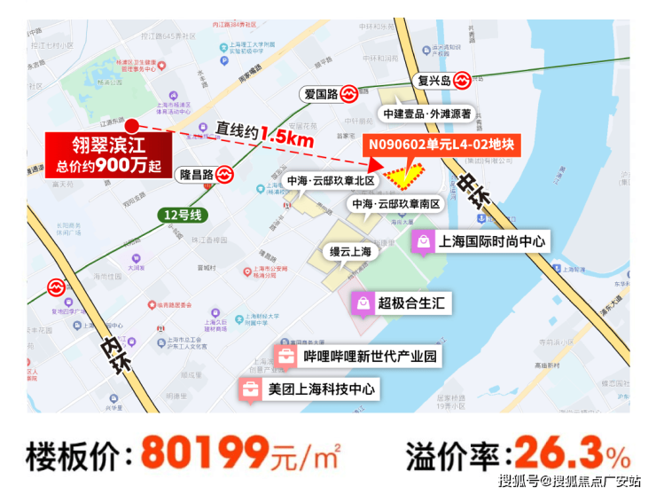 (售楼处最新电话)就在上周五,上海四批次土拍开拍,杨浦又出让了一块地王!杨浦区N090602单元L4-02地块,5家经过了72轮的报价,最终以溢价率约26.30%、楼面价约80199.3元/㎡的成绩被拍下,预计这个地块应该卖约13万+的价格。而翎翠滨江二期均价109341元/㎡,总价仅900万起,在这样的市场下,即将认购的翎翠滨江真的赢麻了。