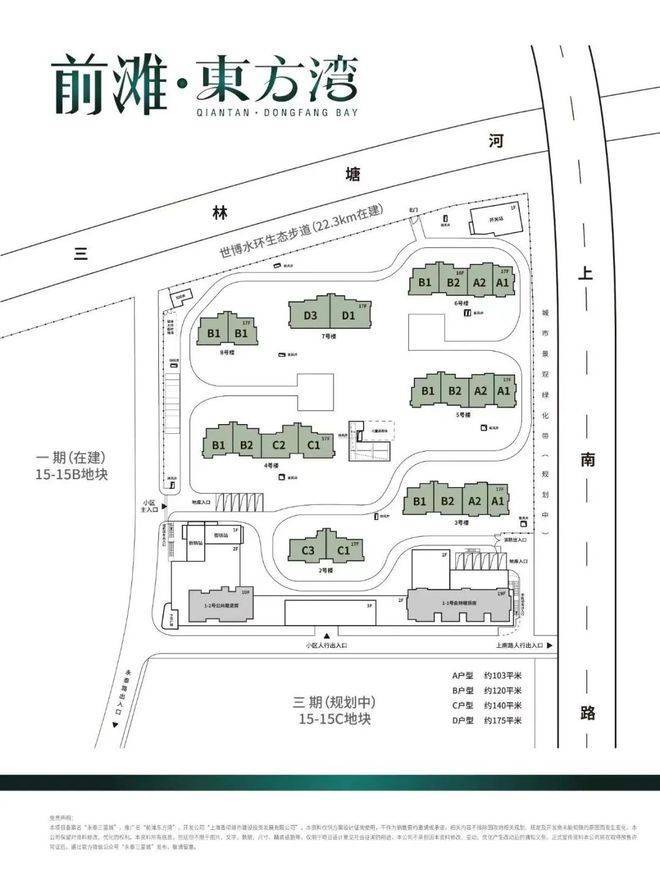 项目所处的位置是超30万方河滨大城,将打造成三林的新地标。二期地块位于一期东侧,即15-15A地块。
