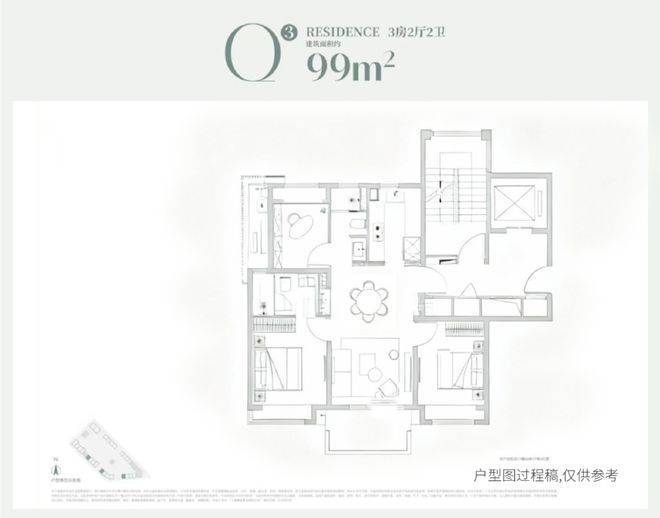 建面约99m²3房2厅2卫