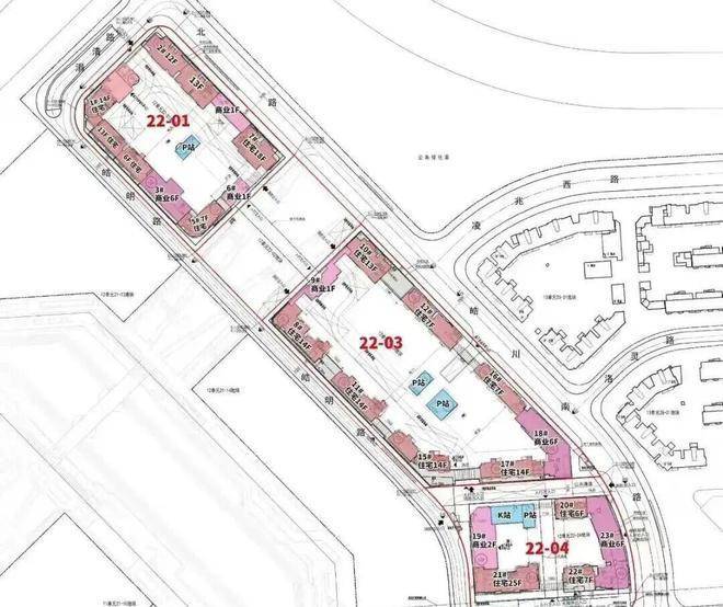 22-01地块占地面积1.1万平方米,总建筑面积5万平方米,包括4栋住宅楼、2栋商业。