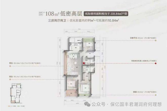 108㎡四房:世纪城唯一小面积四房设计,全明卫+四开间朝南,实际面积相当于市面上在售120㎡使用空间