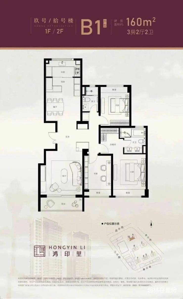 面积约160平,3房2厅2卫;
