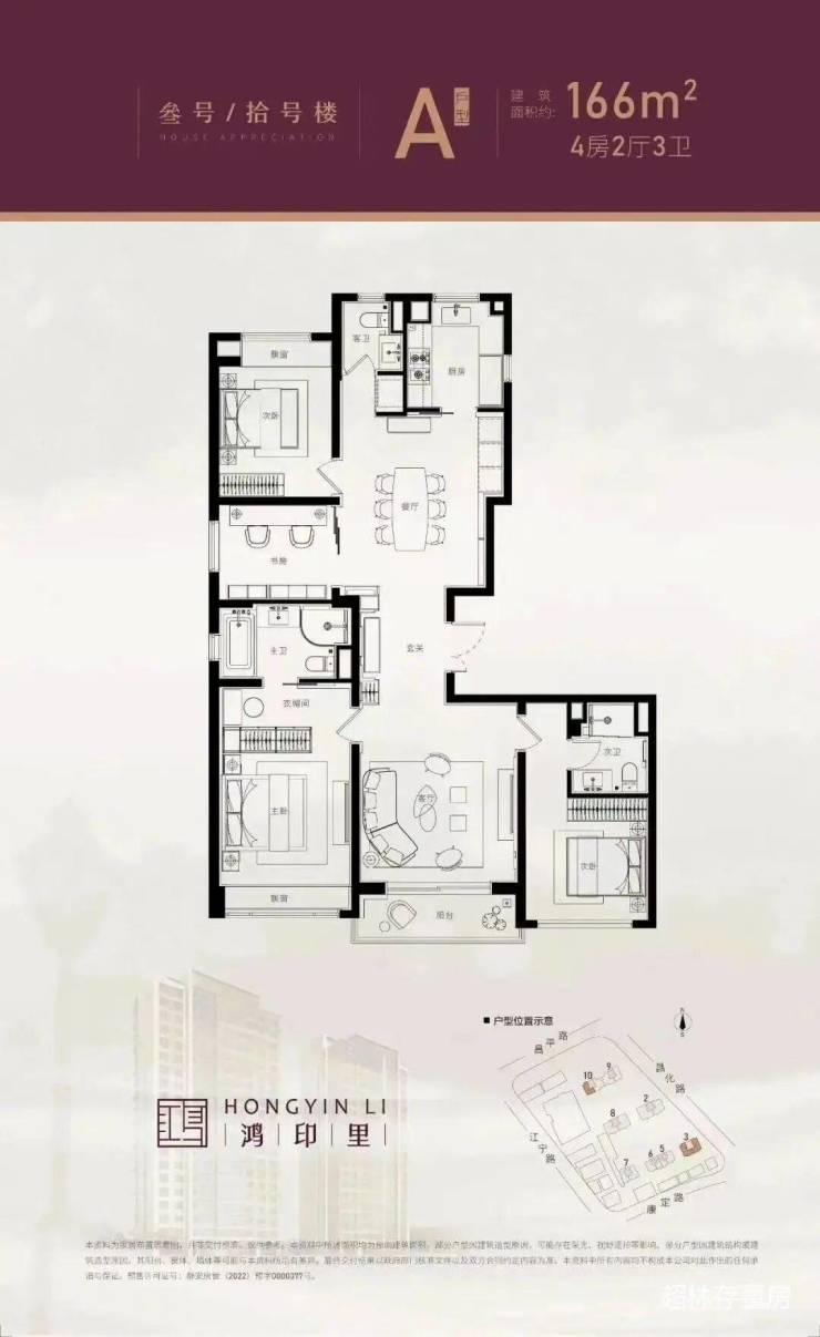 面积约166平,4房2厅3卫;