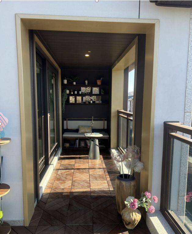 亮点:阳台吊顶采用铝板,成本高拼缝少整体性更好,更美观大气彰显档次