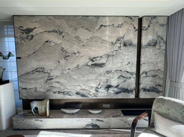 更出彩的还有邱德光团队打造的“潮印”300㎡样板空间,每户标配“门中劳斯劳斯”的意大利装甲入户门,约270°环幕的全景落地窗设计,再辅以近24米长的IMAX级客厅观景面,将眼前如缎面般铺开的之江核心区尽收眼底。