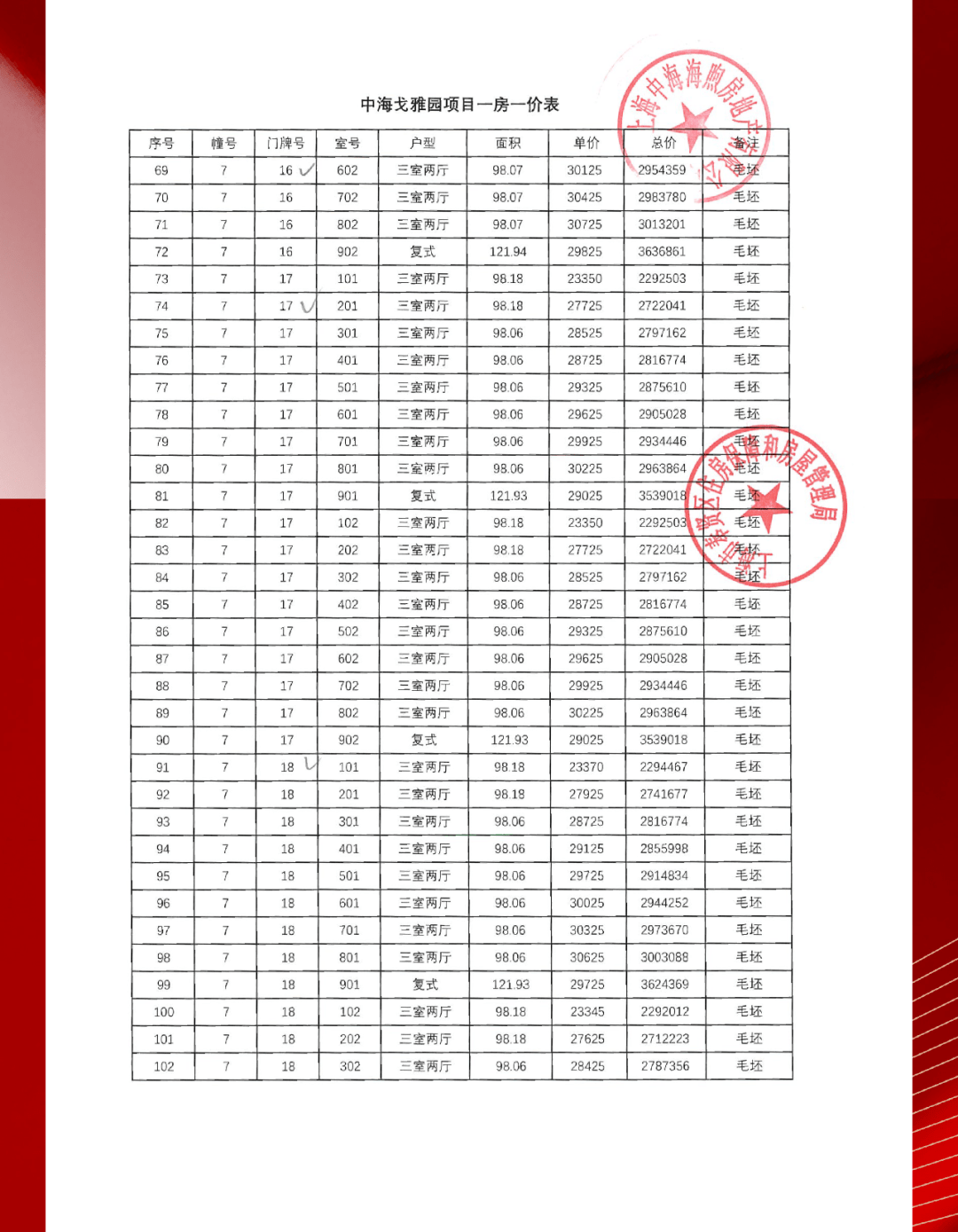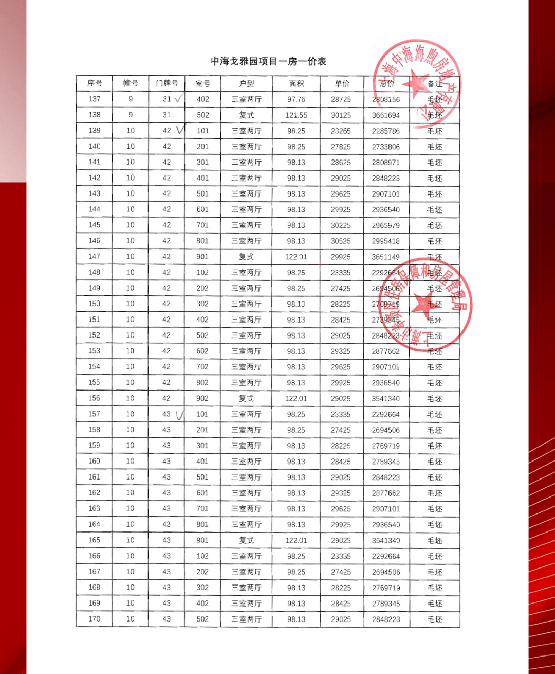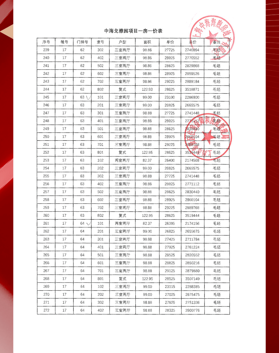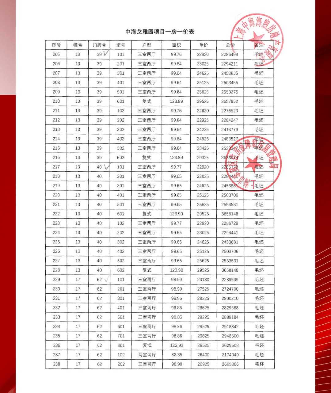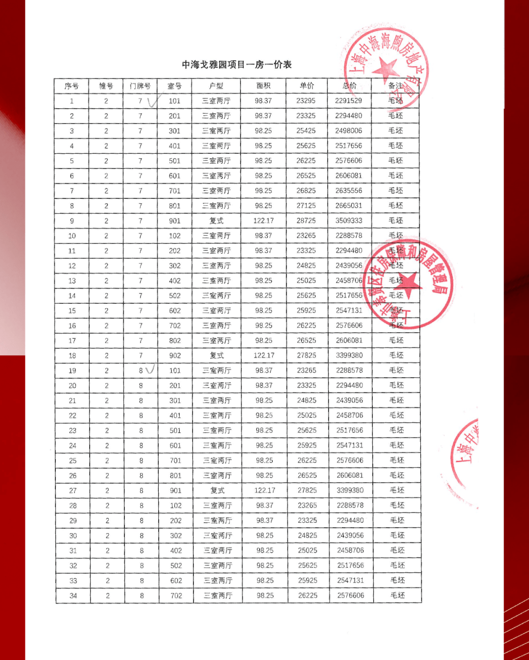 项目一房一价表