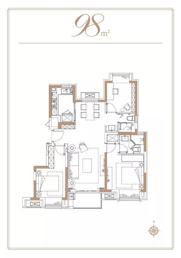 同时,约98㎡的三个卧室都带有飘窗,光线和通透性也是没话说,更将室外的三寸日光雕琢出变幻的美感,延伸出别具一格的空间。敲黑板划重点,这也是该户型的又一亮点,为居住者提供了优质的视野,在市面上非常少见。