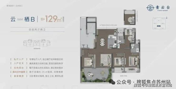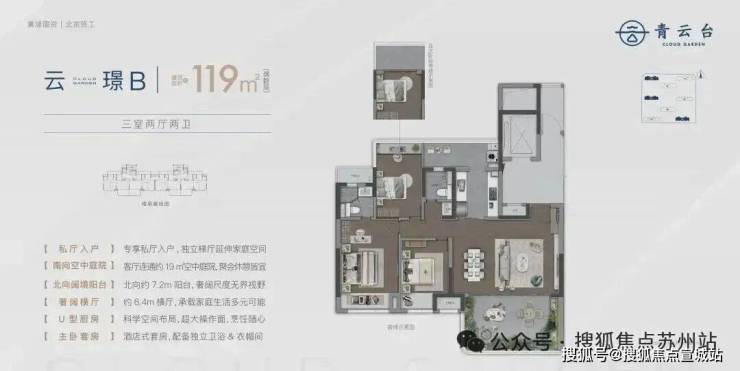 户型亮点:阶梯式露台设计,最大赠送 65㎡,支持私人花园定制;119㎡以上户型空间使用率达 100%;偶数层户型配备 19-25㎡空中庭院;独立电梯厅设计,最大 13㎡。