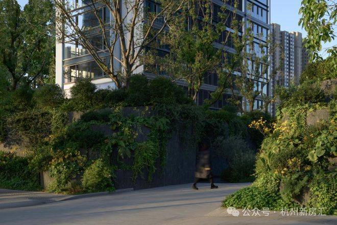走入T-ONE潮博西区的园区,可以看到一条蜿蜒的水系串联着不同场景,贯穿整个楼盘。在这里,Pok是结合了杭州「钱塘江潮」的在地文化,用溪流与叠水打造出了一座很有度假感的花园。花园中,凡是有户外座椅的地方,就会有微风、树荫与水流的环绕。
