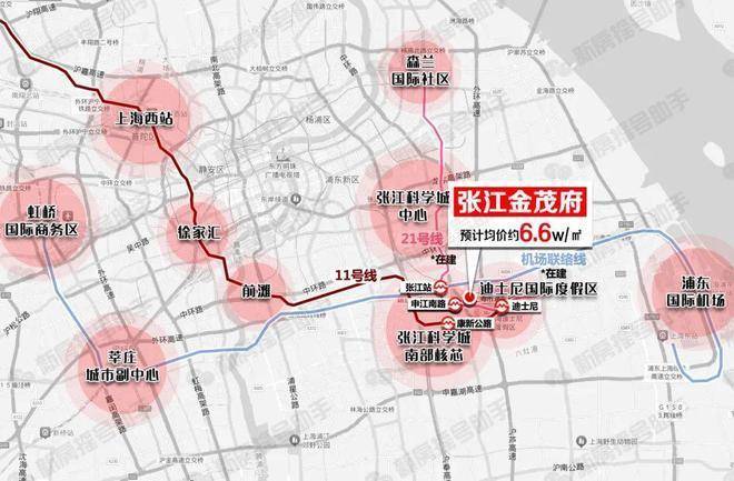 未来机场联络线快速通达浦东机场、上海东站、莘庄以及虹桥商务区,轨交21号线南北向通达张江科学城核芯、森兰国际社区等。