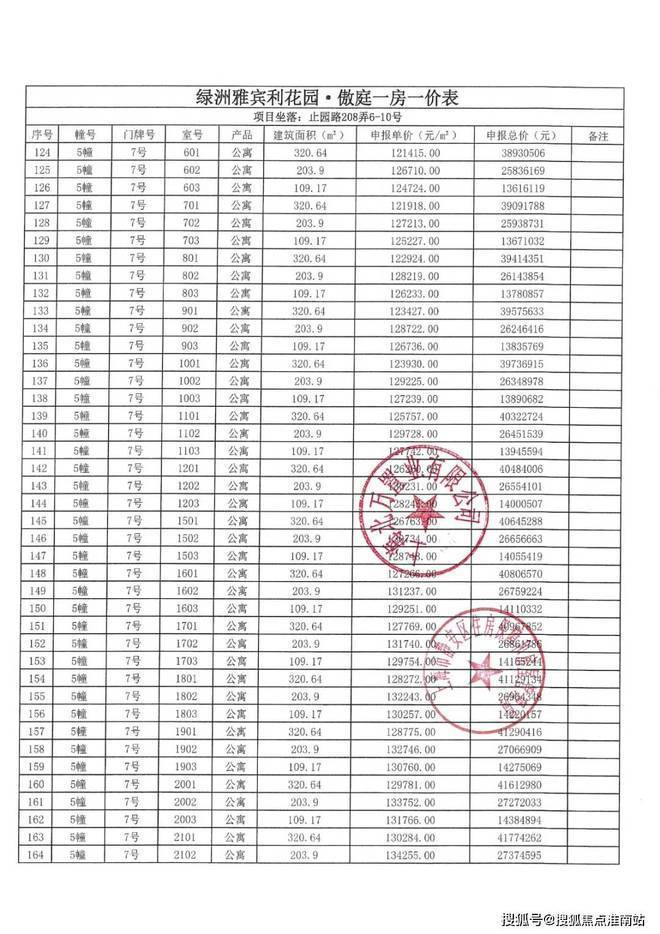 上期一房一价表如下: