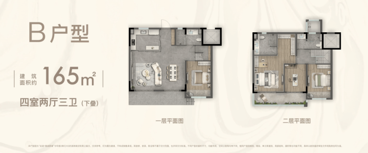 二层:是一个主卧、加一个次卧和次卫的布局。主卧南面连接阳台,北面是一个露台。不论是赏湖,还是坐在这里休息小憩都十分舒适。同时主卧房间内还设置了书房和衣帽间,功能齐全。