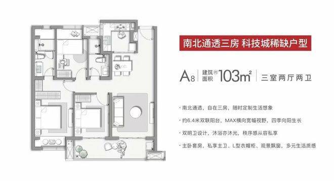 【建筑面积约103㎡三室两厅两卫】
