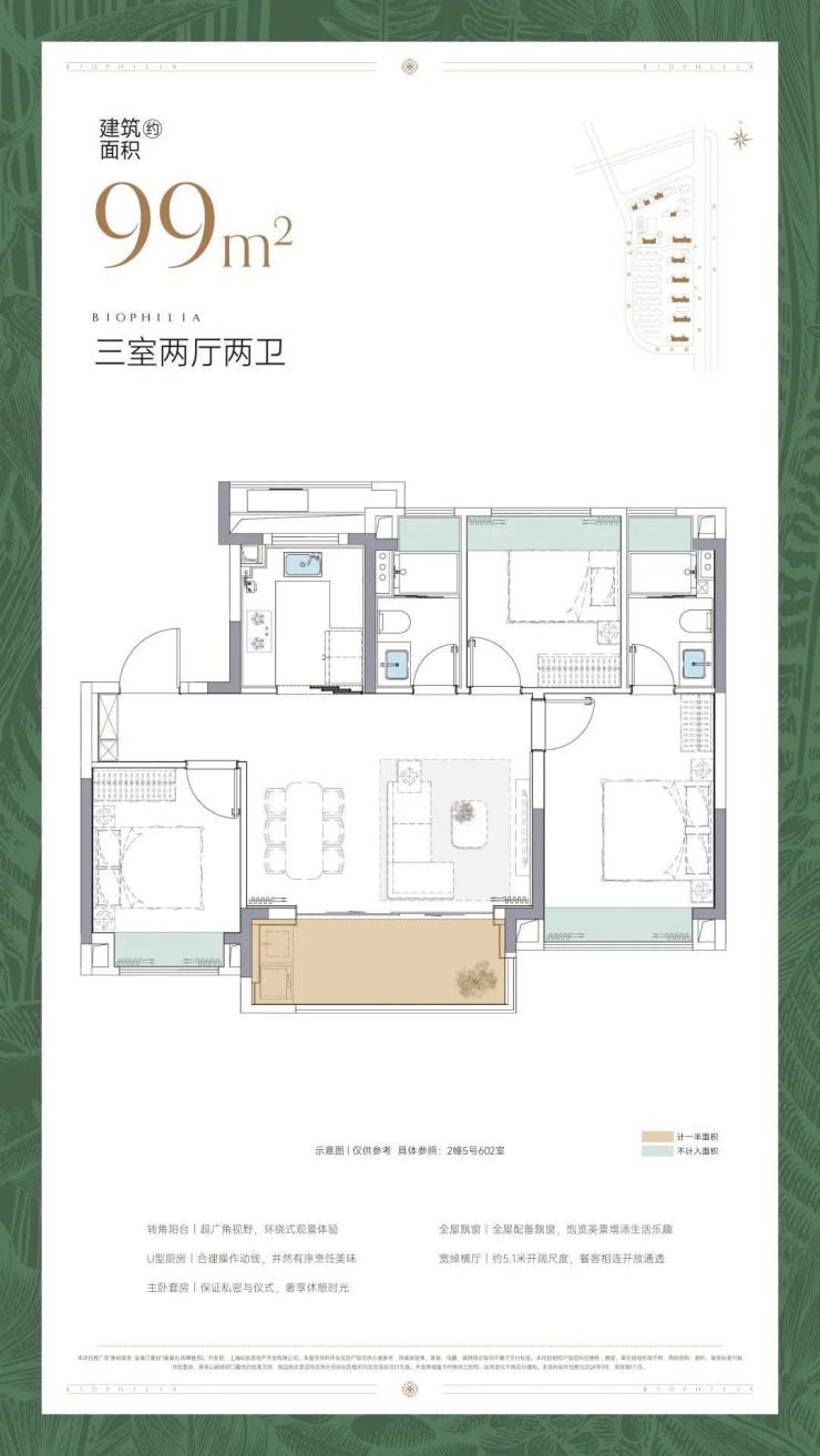 建面约99㎡3房:精致的布局,满满的亮点,让人无法抗拒。