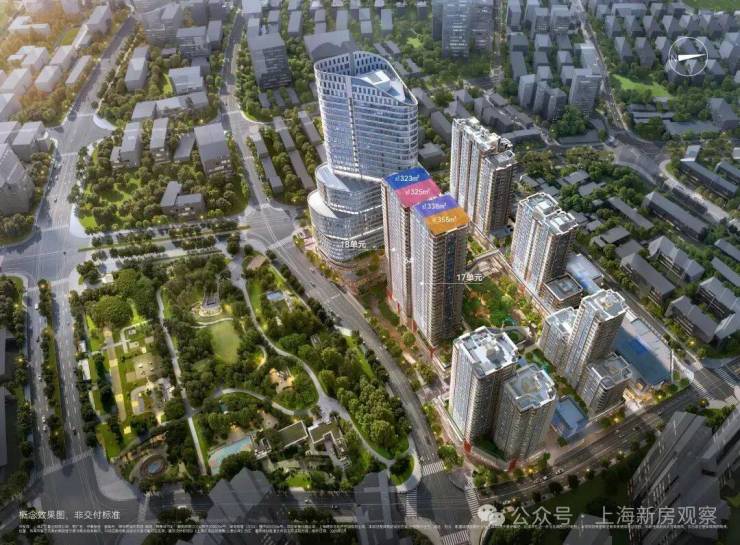 外立面方面,项目整体将打造为新海派建筑地标,设计有弧线阳台、45度玻璃、双层塔冠等,设计灵感来源于蔓楼兰;立面色调方面,将采用珐琅彩色调,具体或为珍珠蓝铝板+红色纹理+金色线条,具体材料及配色还在最终确认。