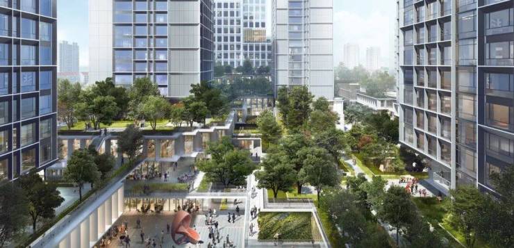 根据意向效果图,雅宾利4期预计为开放式社区设计,采用空中花园将社区立体连接在一起:项目将会采用地面抬高3层的设计,其中3层以下为商业底盘。