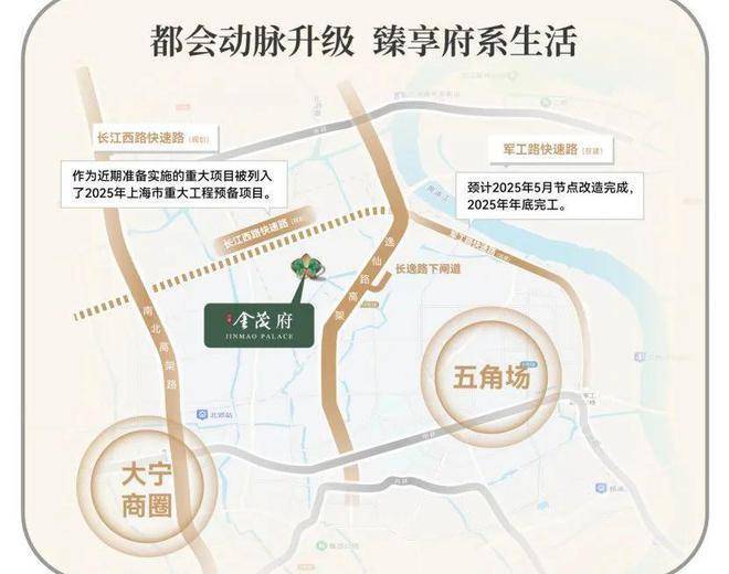 江湾金茂府位于上海九大市级副中心之一的吴淞创新城核心区!其所在板块正迎来历史性发展机遇!依托"大吴淞"战略规划,这里被赋予"上海科创中心主阵地核心承载区"的战略定位,未来三年将实现千亿级固定资产投入!
