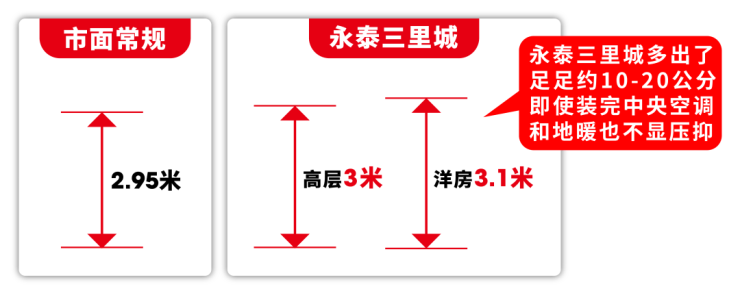 事实上,项目建筑层高比市面常规户型高足足约10-20公分,即使装完中央空调和地暖也不显压抑。