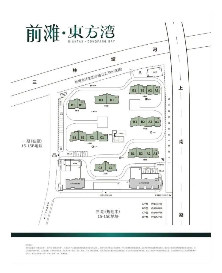 前滩东方湾,永泰三里城二期,浦东新区三林社区Z000701单元15-15A地块(“城中村”改造项目——三林镇金光村地块)。