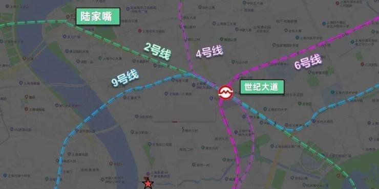 4轨交汇:轨交2、4、6、9号线(9号线商城路/6号线浦电路/2、4、6、9号线世纪大道)
