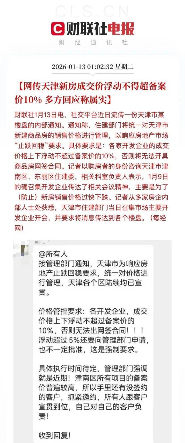近日,发布限跌令首城诞生,天津发布:新房价格浮动不得超备案价10%,否则不予网签