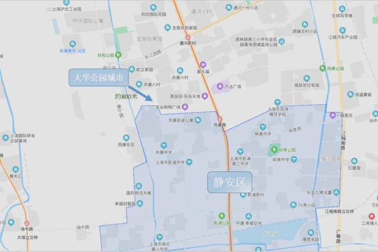 从地图上看,该地块距离静安区的直线距离只有800米,距离大宁核心区域仅约5公里,不仅离大宁国际商圈近,周边还有宝山万达、大华商圈等大型商业配套。