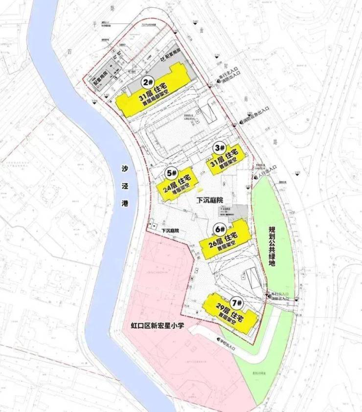 回过来看金茂·璞元,它与瑞虹新城融为一体共享配套,同时距离地铁站更近(就在10号线邮电新村站站口)通勤效率直接拉满,更有沙泾港天然河道与地块平行,顶豪标配的滨水而居氛围跃然纸上!