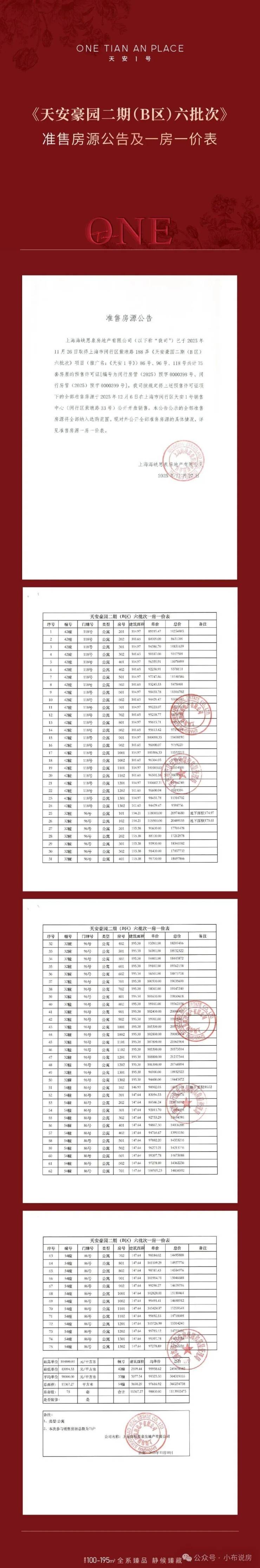 推出阔绰195㎡和175㎡户型;最后48套101㎡和115㎡户型;及136㎡三房户型。